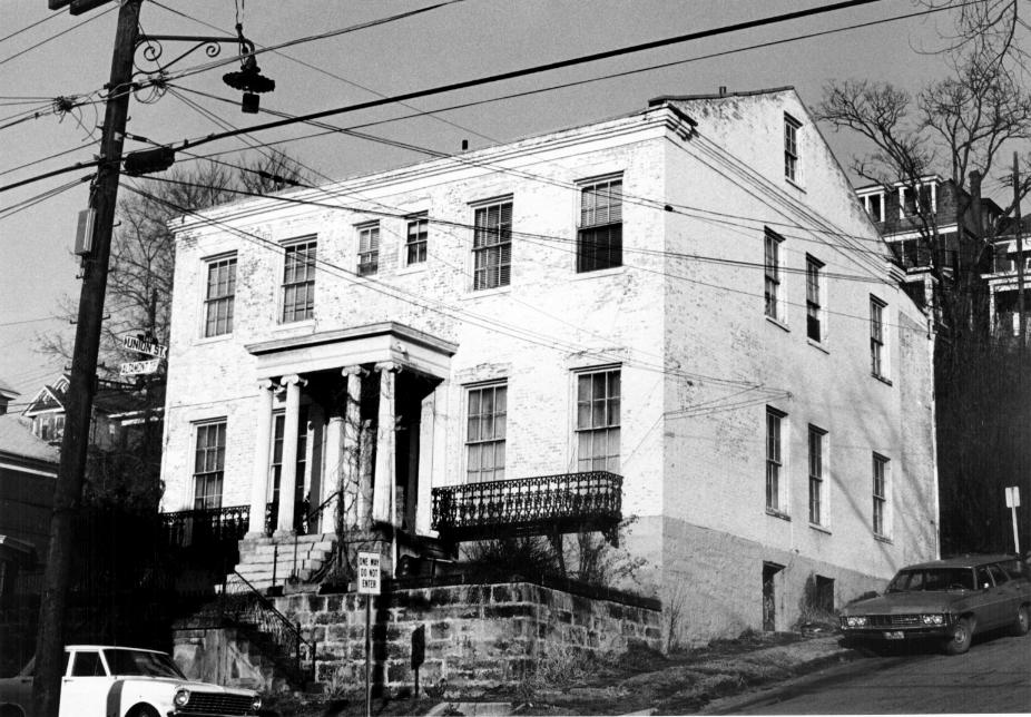 The interior of this house was converted to apartments c. 1905. Constructed c. 1851, it is an example of the regional interpretation of Greek Revival, and served as the county's only hospital from 1889-1890.