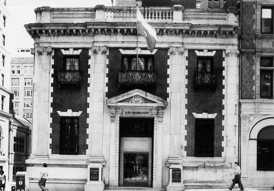 The Alex. Brown & Sons building is an excellent example of the late 19th to early 20th century renaissance in American civic architecture known as the Beaux Arts style. The large stained-glass dome centered above the main banking floor of this building is an excellent example of Art Nouveau stained glass, and as such is further indicative of the significance of this building as a true "period piece." For over 81 years, the Alex. Brown Building has been the home office of Alex. Brown & Sons, which is now "the oldest name in investment banking," having been established in 1800 in Baltimore. For more than 182 years, this firm has played a major role in the history of American business, commerce, and economy. Having been designed and built especially for Alex. Brown & Sons, this building is, in effect, a living monument to that firm and its involvement in American history. Built to be fireproof, the Alex. Brown Building so proved itself in 1904 when it emerged from the devastation of the Baltimore Fire with only minor cosmetic damage, making it a very rare survivor of that tragic event. This building is further significant in Baltimore as having been the first design of a local and later-prominent firm, Parker & Thomas.