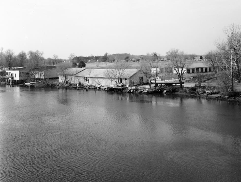 The West Denton Warehouse/Wharf is an early-20th century timber-framed warehouse structure situated along the west bank of the upper Choptank River in West Denton. The West Denton area was a commercial maritime center and transportation hub which included wharves, granaries, a flour roller mill, a shirt factory, canneries, maritime warehousing, and related agricultural/maritime industries. The current structure is rectangular in shape (40' x 160') with the long dimension parallel to the river. The earliest section is the 40' x 100' center portion. The north (40' x 20') and south (40' x 40') additions were built in the 1940s. The framing of the structure includes 16 bays, with each bay consisting of heavy timber posts supporting a 40'-clear span "king rod" truss. After the additions were made, the warehouse contained two offices, one at each end of the building. The south office was finished with pine wainscoting and contains a small wing with sliding windows that opened onto the main warehouse floor. The office located at the north end of the structure contains a chimney and wood stove. The warehouse is a single-story structure with an average clear ceiling height of 8' in the oldest surviving portion, 8' in the south addition, and 10' in the north addition. The clear height (bottom of truss to concrete floor) was originally 11'-4", however, the floor elevation was raised to 8' above mean sea level (to minimize the potential for flooding) when the north and/or south additions were constructed.