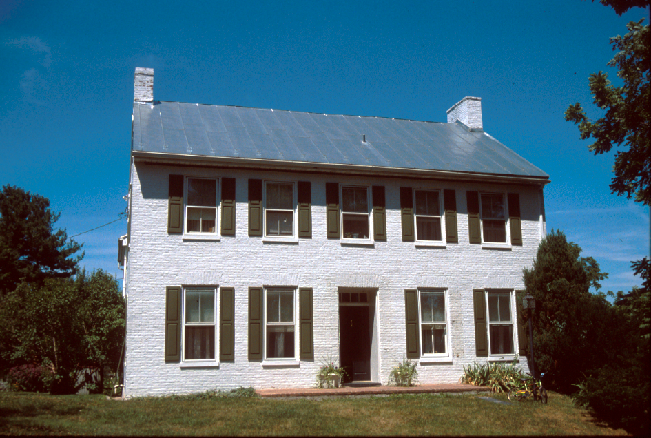The Englar-Schweigart-Rinehart Farm is significant for its illustration of the acculturation of Germanic Swiss immigrants to Carroll County who adopted the prevailing Georigan house form of the dominant English culture, yet adapted it to the patterns of their own cultural preferences. The house and outbuildings also illustrate how these preferences continued to change throughout the 19th century, and include unique buildings, in the case of the enormous barn with an interior silo, and rare survivals, in the case of the springhouse. The house was constructed in 1809 or 1810, according to the will of the property owner, Jacob Englar. The will stipulated that the materials he had on hand for construction of the house should be used to build it for the accommodation of the family and that the resources of the property be made use of in maintaining, supporting, and educating his children. Although Englar was reportedly killed in an accident in 1809, he must have suffered through a debilitating injury that led to his death, rather than a sudden death, as his will was written about one month before he died. That Jacob was planning to build a new house to replace the log dwelling extant on the property suggests that he had been a successful farmer. The house that Englar planned was a traditional Georgian center-passage plan dwelling with a kitchen wing and side porch. It was an English house for a man whose first language was undoubtedly German, but there are one or two features that property reflect cultural preference, or at least cultural memory. Unlike German and English houses, Swiss houses were often banked into a hill at one end. The site did not demand this orientation; there were plenty of fairly level areas that were potential house sites. This must have been a conscious decision, because it enabled ground-level access to the basement kitchen room on the east end. In a Swiss house, the kitchen was located in the basement. Although Englar's house has a traditional rear kitchen wing, the fireplace was small, and although it has been altered, it seems as if it would have been too small for cooking, so the kitchen may still have been in the basement. The closed stringer stair in the hall, rare in Carroll County, is often associated with late-18th century Germanic houses in the area. The fireplace in the east room is located to the south of center in the east wall, and may indicate that this room was originally subdivided. However, the desire to have one of the two bedrooms upstairs heated may also have driven its placement. The Englar family retained the house until 1824, when it was sold to John Schweigart (Swigart). After his death in 1853, the house was occupied by tenants until 1856, when it was purchased by John Rinehart, in whose family the property remained until 1912.