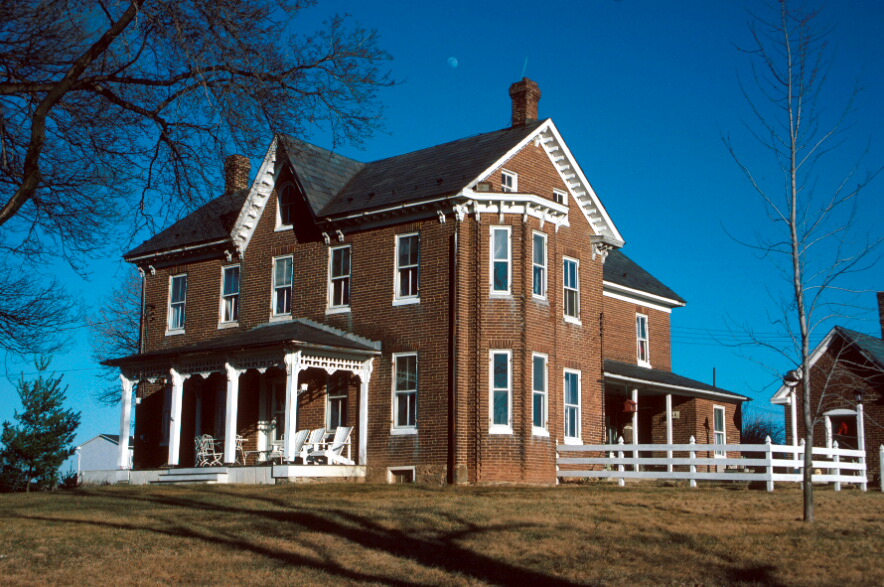 The Andrew P. Frizzell House and Farm Complex is a well-preserved example of the Victorian style in rural Carroll County, Maryland. Built in 1896, the farmhouse retains many characteristics of the regional farmhouse tradition, such as the basic massing and proportions, two-story height, gable roof, and five-bay symmetrical façade. However, it also presents an up-to-date and fashionable Victorian appearance through its T-shaped plan and exterior ornamentation including the bracket cornice, centrally located gable dormer, three-bay porch with decorative motifs, and two-story bay window on the south gable end. It also retains numerous interior characteristics that display the Victorian period in Carroll County farmhouses including Queen-Anne style mantelpieces, gessoed cornice and picture frame moldings, grained doors and doorframes, and late 19th century boxlocks and hardware. The farm complex retains domestic and agricultural outbuildings, including a washhouse/smokehouse, privy, chicken house, corn crib, and bank barn, in a layout representative of the late 19th century in this region. The preservation of both the exterior and interior architectural features and the elements of the farmstead make the Frizzell House and Farm Complex an outstanding example of the Victorian period in Carroll County.
