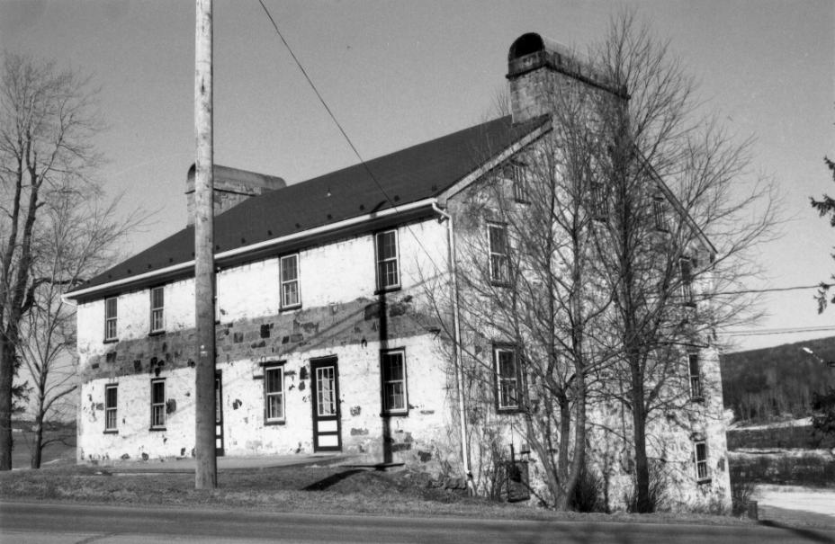 The Tomlinson Inn is a large, rectangular stone structure built on a hillside on the north side of U.S. 40. Constructed c. 1818, the inn has two full stories plus an attic, and a basement which is exposed on the north or downhill side. There are two large gable-end flush chimneys rising six courses above the roofline, and capped with semicircular spark guards; these have very broad stacks being almost half the width of the end walls. The gable roof features cast iron eagle ice breaks. The main or south facade, facing the road, has six irregular bays, with 12-light doors in the third and fifth bays from the west end on the first floor, and five irregularly placed windows on the second story. Evidence on the stonework remains that a one-story hip-roofed porch once sheltered the first floor of this facade. On the north facade, all three floors once held a central entrance, but those on the first and second floors are blocked while the 12-light basement door remains. Windows on both facades are 6/6 sash. The east gable end is three bays wide, with 6/6 sash windows in the outer bays on the first and floors. A slightly shorter 6/6 window pierces the basement in the north bay, and the south bay holds a small 6-light window. The attic gable holds three regularly spaced 6-light casement windows. The west gable end holds three 6/6 sash windows per floor, except for the first-floor center bay, which holds a doorway, now blocked. Evidence of a former porch sheltering this doorway remains on the stonework. The attic gable holds three 6-light casement windows, two panes wide each. There are two large board-and-batten barns and a garage on the property. To the north of the Inn is the Little Meadows Valley which, today, is a picturesque mountain meadow that has remained largely untouched by civilization.