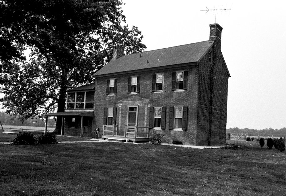Hebron is a two-story brick farmhouse probably constructed in the mid to late 18th century by John Corse or his brother Michael, members of a prominent Kent County Quaker family. The main house remains very much as it was originally built, a solid, simple, 2 1/2-story, central hall brick dwelling. The interior stair and woodwork show the same restraint as the exterior; the house is a testimony to careful, economical craftsmanship. Facing south, the house is four bays wide and one room deep. The gable roof has no dormers, and is now covered with tin and finished with a plain box cornice with simple crown and bed moldings. Eaves terminate in bargeboards which, like the cornice, appear to be early replacements. The brick of the house is light, dull orange in color with random glazed headers on all but the main facade. The brickwork is regular and careful, but in no way ornamental. As was commonly done, the front facade is laid in Flemish bond and the sides and rear in common (American) bond. Window openings are headed with a rowlock of king closers. Exterior chimneys are straight-sided, of equal width for their entire height. That on the east side of the house projects a single brick length. Simple caps are reconstructions. Windows and doors are evenly spaced on the front and rear facades, the main entrance (and formerly a rear entrance, now a window) located in the second bay from the west. Windows on both front and rear are 9/9 sash on the first floor and 9/6 on the second. The attic rooms are lit by two new small 1/1 sash windows in the gables. Additional windows are found on the rear elevation at the level of the stair landing, here a 6/6 sash is used, and in the basement in each window bay, front and rear. A tiny 6/6 sash window with panes set horizontally is situated north of the west end chimney on the first floor. Once part of a working plantation, the house was no doubt surrounded with outbuildings. Only an old well east of the house and a small, oak-framed barn, probably of the early 19th century, remain of the earlier outbuildings. Some newer barns stand to the northwest of the house.
