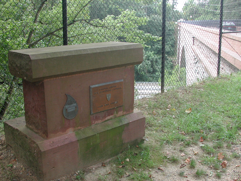 The 220' span single arch of the Cabin John Aqueduct was, from 1863 to 1903, the unchallenged longest stone masonry arch in the world. Designed by Montgomery C. Meigs (1816-1892) of the U.S. Army Corps of Engineers, it was an innovational feat of 19th century engineering. The ingenious features of the aqueduct include the method of the control of water flow and water distribution as designed by Meigs. The use of the water main itself as a supporting member of the arch is an innovation. The strength and durability of the arch is further attested to by the fact that it remains in continuous use to carry east-west traffic on MacArthur Boulevard over Cabin John Creek. The aqueduct inside the bridge provided the principal source of water to Washington, D.C. throughout the late 19th century. At peak capacity, the conduit transported 40 million gallons of water per day to the District of Columbia. By 1968 the aqueduct supplied the city with 20% of its water.
