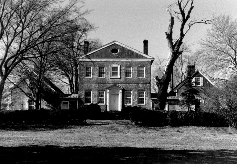 Kennersley is one of the largest and grandest 18th century houses in Queen Anne's County. Constructed c. 1785-98 by Richard Ireland Jones, this five-part house is an excellent example of high style design with clear evidence of the influence of contemporary pattern books. The size and elegance of the house are a reflection of the aspirations and accomplishments of Richard Jones and of his wife Susanna, daughter of Colonel Edward Tilghman, a leading figure in Queen Anne's County in the latter part of the 18th century. In overall form, Kennersley is somewhat unusual in that the hyphens are set flush with the south facade of the main block and the flanking wings. As a result, the central block has a somewhat unusual plan, consisting of a wide stair hall stretching across the front or south facade, allowing ready access to the hyphens. The principal first floor rooms open off the hall to the north, with a view of Southeast Creek, Island Creek, and Chester River. Particular details worthy of note include the gracefully curving stair in the southwest corner of the front hall, the superb mantels and the bold, crossetted architrave trim in the central block. It is also interesting to note that the flanking wings were constructed first and that the main house and the hyphens were then filled in, completing the five part plan.