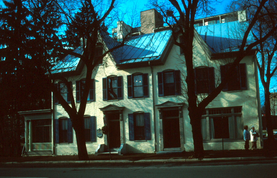 The Elliott-Bester House is a two-story brick dwelling facing east, seven bays in length, including a two-bay addition at its south end. It is painted yellow and is trimmed with black and white. A two-story four-bay ell extends to the rear or north of the main structure. To this ell is attached an early 20th century concrete block addition which housed the Bester florist business. Set on low stone foundations, the bricks of the original section of the east wall and north gable wall are laid in Flemish bond. Other walls display common bond. A quarter round molded brick water table extends along the façade. The windows, under segmental brick arches, contain 2/2 pane Victorian period sashes. They are flanked with paneled shutters at the first story and louvered shutters at the second floor level. A large store window has been installed in the bays north of the main entrance. The two entrances in the façade are topped with late 19th century bracketed hoods. Wide transoms are present over the doors. The original front door is in the second bay from the north end of the house. Three chimneys are present, of varying size but all with corbeled caps. They rise from inside the north and south gable ends with a large flue projecting from the original south gable end. The slate roof is broken by two projecting gables with carved decorative trim. Other exterior woodwork associated with the eaves is of the Victorian period. The original appearance of the house was altered greatly during the 19th century. Changes to the building include replacement of original windows, frames, and doors, the addition of an entrance in the façade, the construction of the two projecting gables in the roof line at the front of the house, and the addition of the two south bays.