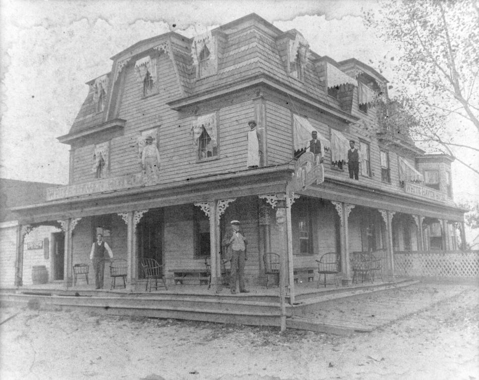 The Whitehaven Hotel, a three-story, mansard-roofed frame structure, facing south. The large U-shaped hotel rests on a low brick pier foundation, and the exterior is clad with plain weatherboard siding mixed with a few beaded weatherboards. The steeply pitched mansard roof is covered with asphalt shingles. Built in several stages, the center core of the hotel is a Federal side hall/parlor dwelling, erected around 1810-1815. The braced timber frame house survives with much of its early-19th century interior woodwork. The exterior, on the other hand, was reworked when a large hotel addition was attached to the west gable end and a mansard roof replaced the previous gable roof. Extending to the east side of the Federal house is a c. 1900 frame addition with a two-story bay window on its south facade. The south elevation is an asymmetrical five-bay facade with an uneven series of door and window openings marking the first floor. A wraparound porch formerly sheltered the first floor. The porch posts and some of the decorative corner brackets are stored within the building. Windows are variously 2/2, 6/6, and 9/6 sash, some apparently reused from the early-19th century portion of the house. Unifying the uneven five-bay facade is a mansard roof, distinguished by a center gable which is also executed with a mansard roof line. A 6/6 sash window pierces the center of the gable, and 6/6 sash gable-roofed dormers mark the roof slope to each side. An historic photograph of the hotel indicates the former presence of decorative sawnwork brackets that embellished the inside corners of the front gable. Rising through the center of the hotel is a large brick chimney stack. The west side of the hotel, which faces Whitehaven Road, is a three-bay facade with two sets of double doors occupying the center and northern bays. Each of the double-door openings are topped by transoms. A large 2/2 sash window pierces the wall to the south. The second floor is pierced by three evenly spaced 6/6 sash windows, and the third floor boasts a center mansard-roofed gable and flanking 6/6 sash dormers. The north wall of the c. 1883 addition is defined by a single large 2/2 sash window on the first floor and single 6/6 sash windows on the second and third floors. The rear wall of the early-19th century house was covered by an early-20th century infill structure, which has since been demolished. The east end of the main hotel is covered by a two-story c. 1900 addition with a low-pitched gable roof and a two-story bay window on the south facade. The south and east walls are marked by 2/2 sash windows and a narrow brick stove chimney rises though the east side. The interior of the hotel retains much of its early and later 19th century woodwork.