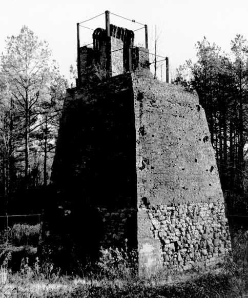 Nassawango Furnace was erected in 1830 by the Maryland Iron Company to smelt iron from the bog ore formations in the immediate vicinity. It is the only furnace in Maryland ever to make extensive use of bog ore. It operated only until 1849, and was reported to be in dilapidated condition by 1859. The furnace produced about 700 tons of iron per year, but the quality and distribution of the bog ore may have caused the several financial failures which the ironworks underwent. The most significant fact about the furnace is that it made use of hot blast techniques only a few years after the idea was developed in England in 1828-1830. If the Nassawango Furnace was built with the hot blast gear installed from the beginning, and not later converted, it would have to be one of the first hot blast furnaces in America. Even if the equipment was added late in the life of the furnace, it would still qualify as a very early example of the hot blast technology. It has been suggested that the blast apparatus was likely added to the existing stack during a time of ownership change, either in 1837 or 1840.