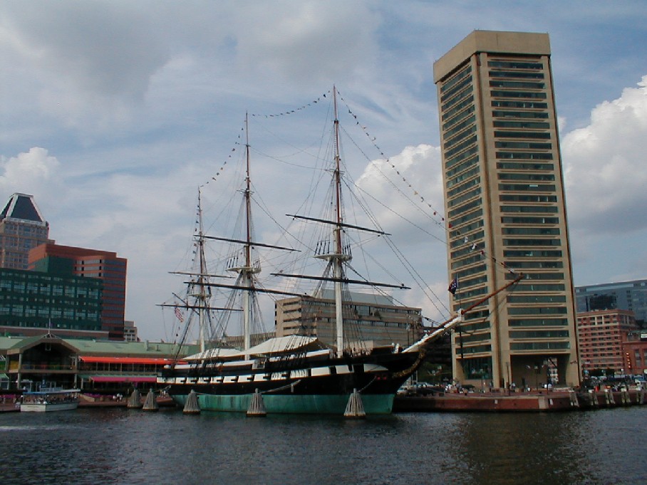 The CONSTELLATION was listed on the National Register of Historic Places in 1975. At that time, it was thought that the ship was the 1797 U.S. FRIGATE CONSTELLATION which was launched in Baltimore, and nicknamed the "Yankee Racehorse" because of her speed. Involved in the undeclared "Quasi War" with France, participating in the campaigns against the Barbary states and Caribbean Pirates, and helping to defend Norfolk from capture by the British during the War of 1812, the frigate was considered worth of listing on the National Register. However, subsequent research determined that the 1797 frigate was decommissioned and dismantled at the Gosport Navy Yard in Portsmouth, Virginia in 1853. That same year, the keel was laid for a new vessel, a sloop of war, at the same Navy Yard. Following Naval tradition, the new ship was named for the recently dismantled one, and the new CONSTELLATION was launched on August 26, 1854. CONSTELLATION was very large for a sloop-of-war, being closer in size to a second class frigate. This enabled the ship to carry a heavier battery of guns than conventional sloops. She was commissioned on July 28, 1855, and began a career which included serving with the Mediterranean Squadron from 1855-1858, capturing three slave ships while the Flagship of the African Squadron from 1859-1861, serving in the Civil War from 1862-1866, and acting as a receiving ship and later a practice ship for the Navy. The ship carried relief supplies to famine victims in Ireland in 1880, and carried works of art from Europe to the Columbian Exposition in Chicago in 1892. She was under sail for the last time in 1893, at the U.S. Naval Academy in Annapolis, Maryland, before being moored at the U.S. Naval Training Center in Newport, Rhode Island, to serve as a stationary training vessel. In 1904 the ship was dry-docked at the New York Navy Yard for extensive survey and repair. By this time, it was generally believed that the ship was the 1797 Frigate, and in 1914 she was ordered restored "as she appeared in 1814" by acting Navy Secretary Franklin D. Roosevelt. To minimize costs, however, these alterations were limited to "such general details as would be noticed by the layman." The 1880s-era bridge platform and 1890s deck housing were removed, and she was displayed in Baltimore and Washington during the fall and winter of 1914 before returning to training duty in Newport. In 1933, she was decommissioned and placed in "Ordinary," essentially being mothballed, until 1955, serving briefly as the Relief Flagship of the U.S. Atlantic Fleet and Battleship Squadron 5 from 1941-1945. In 1955, the City of Baltimore acquired the ship and had it "restored" to its supposed Frigate appearance, making several alterations. The ship served as a tourist attraction in the Baltimore Inner Harbor until the 1990s, when it was drydocked for emergency repairs. The keel was severely "hogged" and much of the wood was rotten. Four years of restoration work has returned the CONSTELLATION to a close approximation of its Civil War appearance. This was the largest non-Naval wooden ship restoration ever undertaken in the United States, costing $7.5 million. Through interpretive and hands-on tours, the CONSTELLATION continues to serve the public.