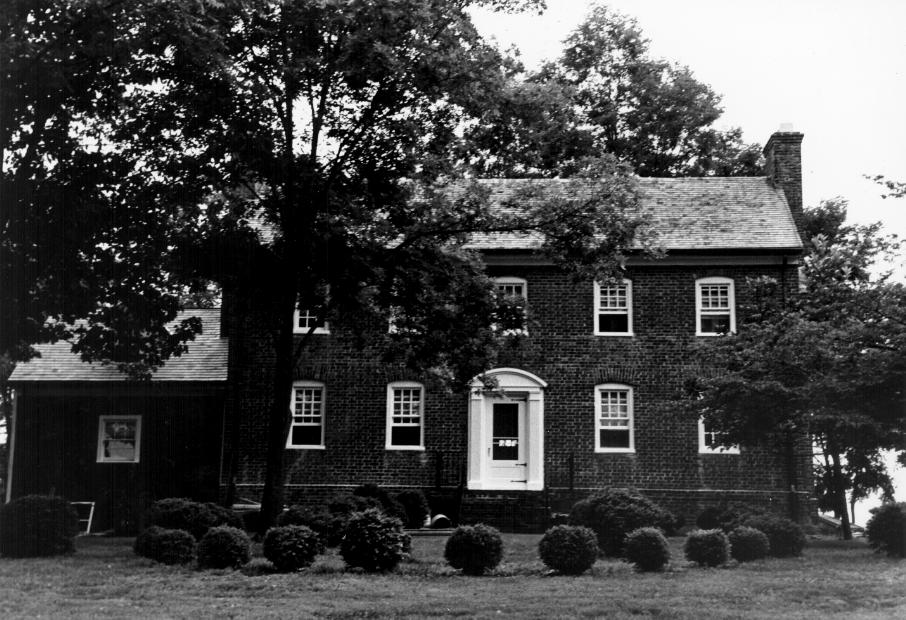 Cornehill is an imposing Georgian house. A brick in the southwest corner dated 1786 lends the house added significance by providing a reference point for dating comparable Maryland structures. The initials "T.F.", located with the date, purportedly refer to Thelbert Freeland, a member of an influential family in northeastern Calvert County. The lack of any Calvert County records before the late 19th century makes it impossible to determine if Thelbert Freeland built Cornehill. In fact, the entire history of the property before the 1890s is a mystery. The earliest known owner was Thornton Dorsey. Colonial Maryland records not damaged by the Calvert County Courthouse fires reveal that in 1663 the proprietor patented a 350-acre tract of land called Cornehill to Francis Billingsly. This tract was described as being "upon the main ridge betwixt the branchs of Plumpoint Creek and the branchs of Hunting Creek." During the majority of the 18th century, the Mackall family, large Calvert County landowners, held Cornehill, or "Cornhill."
