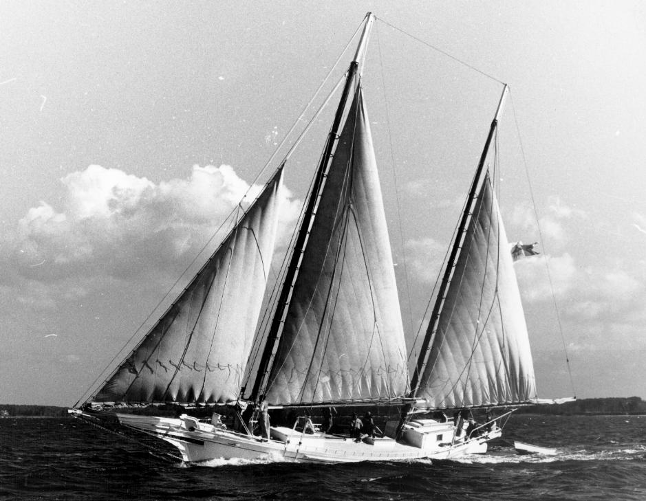 EDNA E. LOCKWOOD is a 9-log sailing bugeye (double-ended multi-log hulled oyster dredging vessels with two masts and three sails), official number 136088, homeported in St. Michaels, in the same county where she was built by master boat builder John B. Harrison on Tilghman Island in 1889. LOCKWOOD is 53'-6" long, has a 15'-3" maximum beam, and a 2'-7" draft. Her wide beam and shoal draft are ideally suited to dredging oysters from the waters of the Chesapeake Bay. Her most significant feature, her log bottom, is original to 1889. The keel log is 6" thick, tapering to 2 1/2" thick at the tops of the outermost or wing logs. The logs, four on each side of the keel log, are fastened together with wrought iron bolts. The overall shape of the hull is round bottomed, with a sharp stern making her double ended. The hull is framed and planked above the logs to add freeboard. A wooden centerboard allows better handling to windward under sail. The centerboard is pivoted at its lower forward center to allow it to be raised and lowered in the well of the centerboard trunk as water depth and wind conditions allow. Deck beams of pine, sided 3" and molded 5", spaced out on 2' centers, support the hatches, mast steps, and deckhouse. The main hatch is located amidships between the masts, and a cabin is located aft of the mainmast. Cabin and hatch coamings are of oak drifted to the heavy deck beams and to heavy oak flooring attached to the keel log. Hatches are of cedar while cabin planking is of 2" pine. LOCKWOOD is rigged with two masts which support a simple rig of three triangular leg-of-mutton sails. Both masts, stepped in boxes of oak framing fastened to the keel log, are raked at an angle of approximately 15 degrees. Originally LOCKWOOD was outfitted with hand-powered oyster dredge winders, which were fastened to the deck aft on each side. Sometime before 1910 the hand winders were replaced with power dredge winders. Also prior to 1910 a "patent stern," wheel steering gear, and power dredges were added.