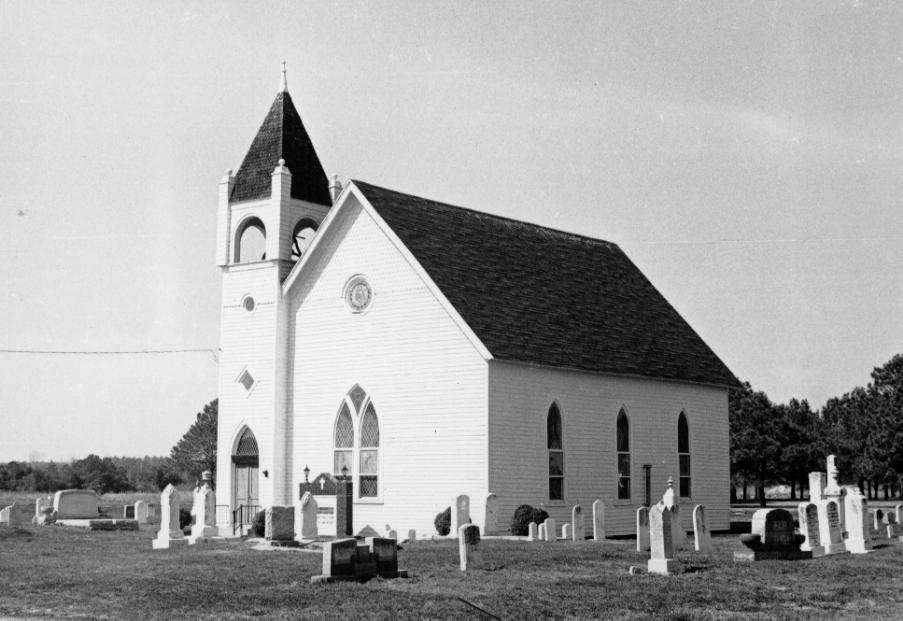 St. Peter's Methodist Episcopal Church is important for the architectural character of its present appearance which is the result of a 1901 remodeling. The building has the distinctive characteristics of the Gothic style rural church built in Somerset County in some numbers in the closing decades of the 19th century and continued to a lesser amount in the early decades of the 20th. Typically, these buildings have a central rectangular block with a sharply pitched roof and large Gothic arched windows. Added to this generally are a bell tower and pavilions with a resultant complex T or cross plan. These churches are prominent usual landmarks on the flat terrain of Somerset County. St. Peter's represents a restrained version of this Gothic church on the exterior. The interior, however, is elaborately decorated with beaded boards and turned balusters. Distinctive is the angling of the pews which is more unusual than usual for this type of church in the county. Rock Creek Methodist Episcopal Church near Deal Island has a sweeping curve arrangement of pews but is a larger structure. Unlike the other Gothic churches but a reflection of its turn of the 20th century date is the Romanesque treatment to the cap of the bell tower. The cap is characterized by shingle siding, round arches, and a pyramidal roof.