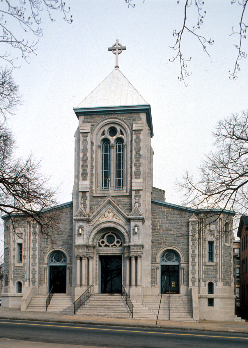 St. Elizabeth of Hungary is a Roman Catholic religious complex located opposite Patterson Park in eastern Baltimore. Developed over the period 1895-1926, it comprises four buildings: a two-story, gable-fronted brick structure erected in 1895 as the original church, parish hall, and rectory; a large stone Romanesque church building constructed in 1912; a three-story convent built in 1922; and a large three-story parochial school which was added to the site in 1926. The convent and school are faced with Woodstock granite and feature cast-stone detailing to correspond with the material and Romanesque style exhibited by the 1912 church. The buildings retain good integrity to the period of their construction. The complex occupies a city block directly opposite Patterson Park; the original building and the present church front on East Baltimore Street, facing the park, at the south end of the lot, with the convent located at the north end of the property and the school filling the center of the block. The complex is located within a dense urban neighborhood of two- and three-story masonry rowhouses, chiefly developed in the last decade of the 19th century and first quarter of the 20th.