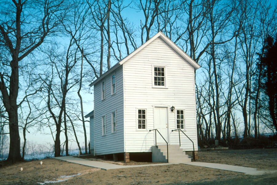 Mt. Tabor Good Samaritan Lodge #59 lies in the small rural community of Chesterfield in central Anne Arundel County. Constructed in 1899, the small, two-story wood frame building has a rectangular plan and a gable front. Resting on brick piers, the building has a gable roof covered with asphalt shingles, and the walls are covered with wood weatherboard siding. A brick, interior stove chimney is located at the center of the east elevation. A small one-story gable roof addition was made in 2000. The lodge is a simple utilitarian structure with little architectural ornamentation. It has a gable front orientation, facing south. A slight nod to architectural embellishment and symmetry is expressed on this elevation. The entrance to the one-room plan structure is located in the center of the south elevation. Plain poured-concrete steps rise to a wood six-paneled door. The door surrounds are plain boards except for the door head, which is decorated with a pediment-shaped flat board. Small 4/4 wood sash windows flank the entrance. A 6/6 sash window is located above the door at the second story. The east and west elevations have four 6/6 sash windows each, two per floor. All of the windows appear to be original, yet they must have been reused sashes because some of the windows consist of two upper sashes. The rear addition has an entrance on the east elevation, which is covered by an extension of the roof. Exterior walls of the addition are covered with modern beaded wood siding.