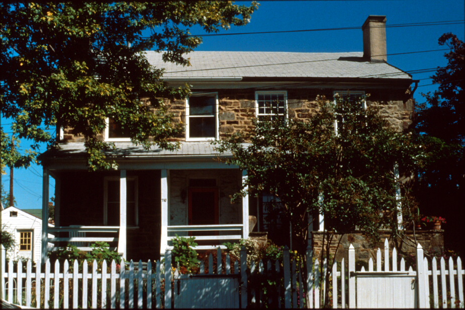 The Stone Hill Historic District, a complex of workers’ housing dating to the mid-19th century, consists of seven gridded blocks overlooking the Jones Falls. Associated with Mount Vernon Mills, the district is comprised of 21 granite duplexes, a granite Superintendent’s House, and a granite service building, now converted to a duplex. All of the buildings feature roughly coursed granite walls, gable roofs, front porches, and interior end chimneys with brick stacks. With the exception of the houses on the south side of Bay Street, all of the houses face south. Physical evidence found in the attic of 719 Field Street shows that the houses originally had wood shingle roofs. Sanborn Maps and surviving porches suggest that original hipped roof porches projected out from the two paired doors of each duplex. For the most part, the duplexes are two-story, four-bay, double-pile buildings on raised basements. They have a rectangular footprint with one-story kitchen wings extending out from the rear, which have gable roofs pierced by center chimneys. Original windows were 6/6 sash, with stone sills and brick lintels, although most now display 1/1 sash. Transoms top front doors.