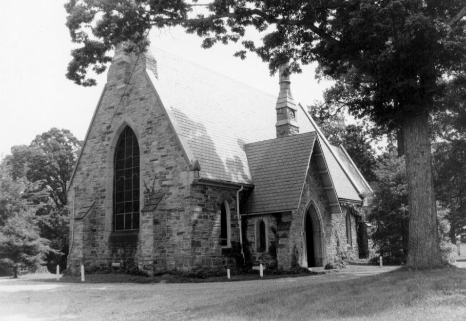 St. Mary's Church is a small Gothic Revival parish church, carefully designed in the "Early English" manner. The buttressed, locally quarried, gray rubble stone walls, with cut Port Deposit granite trim, are relatively low and thick, and support a very steep slate-covered roof. The structure is without clerestory and side aisles. The nave is of five bays, and the chancel, to the east, is of two bays. The principal entrance is through a south porch, in the English medieval tradition, located one bay east of the westernmost bay. A small sacristy, with its entrance, extends from the north side of the chancel. East and west gables terminate the roofs with granite copings or parapets, now covered with copper. A base for a bell-cote tops the western gable, but the bell-cote was never built, and a large stone cross of recent date stands across the base. An ornamental chimney, with a fleur-de-lis, the symbol of the Virgin Mary, in a bas-relief panel, rises from the south wall at its intersection with the east wall of the porch. In the Early English manner, most windows are tall narrow lancets. Three lancets, a taller and wider one flanked by two shorter and narrower ones, are above the altar in the east end. The west window of the nave is a single, tall, wide opening without tracery. Only one window--the east window of the chancel's south wall--has tracery, consisting of a center mullion dividing into two unadorned pointed arches at the head. The glass is by William Butterfield, and was purchased during the latter half of the 19th century from Gibbs of London. Perhaps the most notable detail of this small parish church, it is a matched set of period glass, rich in pattern and color, portraying the life of St. Mary.