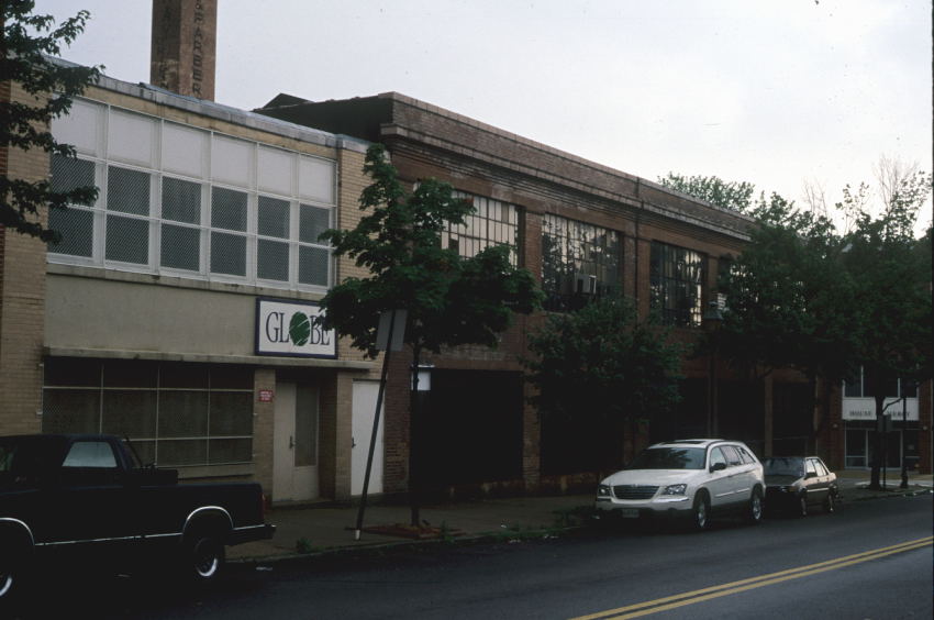 The Lion Brothers Building is a multi-level building that once housed the operations of the Lion Brothers embroidery company. The original building, fronting South Poppleton Street near the intersection of Boyd Street in West Baltimore, was constructed c. 1885; it was expanded several times over the subsequent 75 years, ultimately encompassing the majority of the block bounded by South Poppleton, Boyd, Hollins, and Callender Streets. The surrounding neighborhood is primarily residential in character, and the Lion Brothers building shares the block with two rowhouses on 1200 square foot lots. The factory comprises six interconnected masonry buildings constructed from c. 1885 through c. 1960: (1) the original building at the corner of Poppleton Street and Body Street (a narrow alley); (2) the 1920 addition north of the original building at the corner of Poppleton Street and Hollins Street; (3) the 1935 addition directly east of the 1920 building along Hollins Street; (4) the 1938 addition directly east of the original building along Boyd Street; (5) the 1948 addition east of the other additions spanning from Hollins Street to Boyd Street; and (6) the c. 1960 loading bay east of the 1948 addition on Boyd Street. The original building is three stories high and four bays wide. The 1890 Sanborn Map shows that the building was then a two-story-high livery. By 1914 the livery stable and hall had been converted into the Lion Brothers Company embroidery factory and a third floor had been added with floors and roof supported by a steel frame. A major two-story concrete-and-steel addition was constructed to the north in 1920. This addition features tan brick walls, wide multi-paned industrial windows, and a corbeled brick cornice surmounted by stone band course and coping wall. Between the floor levels, ceramic insignia panels represent the embroidered patches produced by Lion Brothers Company. Fifteen years later, in 1935, the factory expanded to the east with the construction of a two-bay addition, nearly identical to the 1920 building. It features identical insignia panels, cornice line, and tan brick walls. In 1938, another addition was built directly east of the original building. Although similar materials were used, this alley side addition lacks the exterior symmetry, insignia decorative panels, and expansive interior column spacing of the earlier additions. In 1948, the building expanded yet again to the east with a two-story buff brick addition. The last major building element, an alley side garage opening east of the 1948 building, appears to date from c. 1960. Projecting above the roofline of the factory are four large skylights, the top of an elevator shaft, and a square chimney. Painted signs on the chimney advertise "Marcus & Farber," a garment business that owned and occupied the building from 1961 to 1978. The interior of the factory features a large open floor plan. Columns spaced from 18 to 20 feet apart in the 1920 and 1935 additions support the floors and roof. Angular 18-foot-high columns on the first floor feature industrial-style rounded capitals supporting concrete plinth blocks at the ceiling. The 10-foot-high columns on the second floor are squared off, lacking the capital detailing. Multi-paned windows along exterior walls and rooftop skylights provide daylight and ventilation for the open work areas. The interiors of the original building and the 1938 addition have been extensively subdivided on the ground level. Upper floors on the original building are supported by steel posts and feature open work areas. It is partitioned only at the stairs and at the restrooms located in the corners of the second floor. The column spacing on the 1938 addition does not line up with the previous additions and this building section lacks the second-floor skylights of the additions on Hollins Street. The narrow 1948 addition houses partitioned offices along the Hollins Street ground floor level and warehousing spaces in the rear.