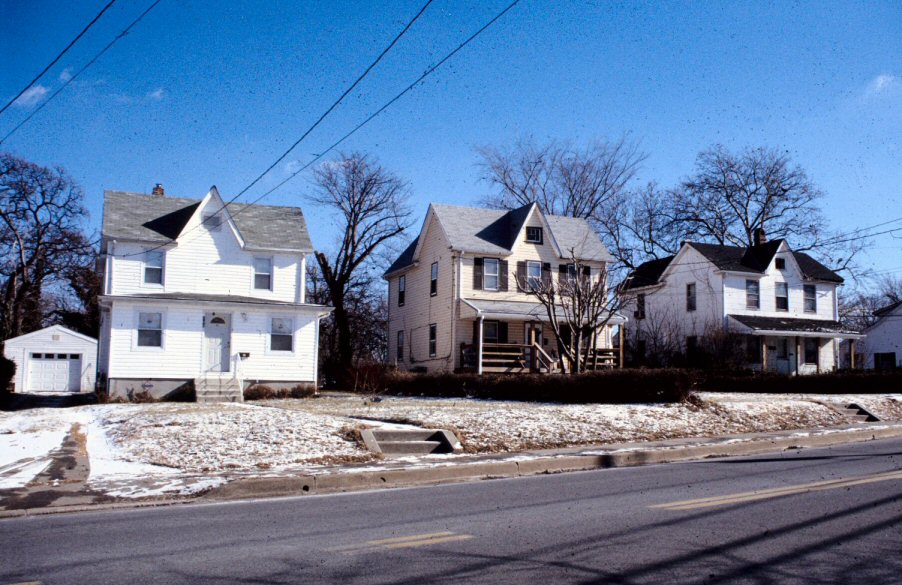 The Winters Lane Historic District in Catonsville is an historically African-American residential community located between Frederick Road and the Baltimore National Pike. The linear historic district runs north-south along Winters Lane with associated historic resources fronting the intersecting streets of Edmonson Avenue, Shipley Avenue, Roberts Avenue, Leewood Avenue, and Old Frederick Road. Winters Lane Historic District is composed mainly of single-family dwellings augmented by a few commercial, social, or religious resources. The historic properties, which developed between 1867 and the mid 1940s, are vernacular in design and workmanship, reflecting the working-class status of the residents. The district contains 155 properties, including 141 residential properties, two former schools, three commercial buildings, three social clubs, and five churches or church-related buildings. The housing fronting Winters Lane was largely speculative development, with single-family freestanding and twin or duplex buildings similarly constructed and detailed. Set close to the road on narrow lots, the residential and social buildings are typically wood frame with solid masonry foundations. The few masonry structures in the district were constructed of rock-faced concrete block or stretcher-bond brick. Cladding materials include wood weatherboard, aluminum siding, vinyl siding, asbestos shingles, and some brick facing. Rooflines, reflecting the fashionable architectural styles of the period during which they were erected, are side gable, front gable, cross gable, hipped, and sloping with minimal applied detailing to the cornice lines. A number of the side-gabled roofs were accented with steeply pitched front gables indicative of the Gothic Revival style. Architectural styles influencing the forms and detailing of the vernacular buildings on Winters Lane include the Queen Anne, Gothic Revival, Colonial Revival, Bungalow/Craftsman, Cape Cod, American Foursquare, shotgun, and ranch house. Many of the non-historic dwellings within the district imitate the architectural detailing and forms of their neighbors. The endurance of Winters Lane as a cohesive African American neighborhood predominantly isolated from the larger community of Catonsville is based on the establishment and continued existence of educational, commercial, social, and religious activities. The original use of many of these properties, particularly the educational, social, and religious resources, has evolved, but the buildings remain prominent elements in the neighborhood. These include the original schoolhouse on Edmonson Avenue and Winters Lane, Banneker Public School (now the community center), Grace AME Church, Morning Star Baptist Church, Mount Olivet United Methodist Church, Full Gospel Tabernacle Church, Upper Room Prayer Garden, Temple of Faith Church of God in Christ, and Landmark Lodge No. 40 of the Free and Accepted Masons. These buildings are all purpose-built with meeting space and prominently set on larger lots. Settlement along Winters Lane was greatly aided in 1867 by the construction of the wood-frame school at 100 Edmonson Avenue for African American children. Three bays wide and three deep, on a rubble stone foundation, the one-story school is accented by Gothic Revival detailing. The building currently serves as a church. The Landmark Lodge No. 40 of the Free and Accepted Masons at 48-1/2 Winters Lane is a one-story wood-frame vernacular building that was constructed in 1889 as the Morning Star Baptist Church. A few commercial buildings servicing the community formerly stood at Edmonson Avenue and Winters Lane, but the wood-frame buildings have been razed and replaced in the 20th century.