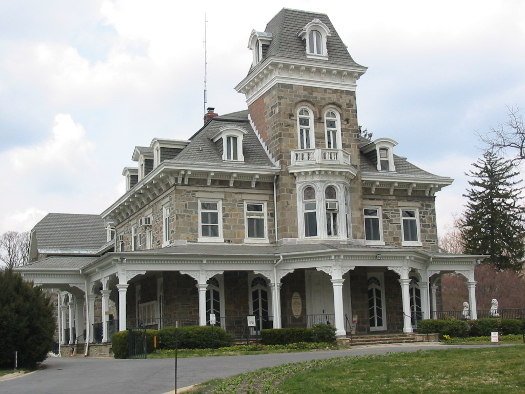 The architect of Cylburn House, George A. Frederick, designed the structure in Renaissance-Revival-style and constructed the mansion of dressed gneiss stone, quarried in the Bare Hills area of Baltimore County. The building is 2 ½ stories with a 3 ½-story tower on the principal (south) façade. A 1-story, open veranda extends around the south and west sides of the house. On the west there is a porte-cochere, formerly a carriage entrance. Cylburn House has a hip-on-hip roof with a kick, or "bell cast," at the eaves. Narrow, elongated, paned dormers in the lower hip have curved roofs. A bracketed, exterior cornice with dentils surrounds the house. The second story window lintels are curved and the window as a unit extends to the veranda floor. The veranda cornice is plain with dentils only. The porch roof is supported by square columns with scrolled fretwork brackets at the juncture of the cornice and each pier. The tower projects above the south wall and roof. A 3-window semicircular bay window on the second floor projects from the south tower wall and supports a third-floor balcony. The two floor-length, narrow window-doors open onto the third-floor balcony. Each of the pair has semicircular stone trim. The tower cornice, above the third floor window-doors, is bracketed, and above this is a four-sided Mansard tower roof with a round-head dormer, one in the east and one in the west roof face of the tower. A two-story stone wing extends from the north side of the building. The house is surrounded by 165 acres of lawns, woods, 11 nature trails, and individual gardens.
