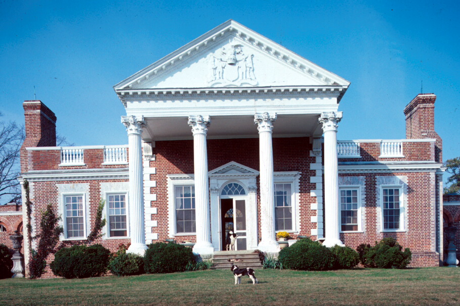 Built by Governor Horatio Sharpe as a retreat and entertainment pavilion, Whitehall was later enlarged and became his residence from his retirement in 1769 until his return to England in 1773. The original pavilion, gardens, parks, and entrance court of this 1,000-acre estate were designed and built under Sharpe's supervision. The house is representative of the high achievement in Georgian architectural design. It is a two-story five-part Flemish-bond brick building of unusual length, about 200 feet. The giant portico on the central portion of the house, with its Corinthian columns, is one of the earliest in the American colonies.