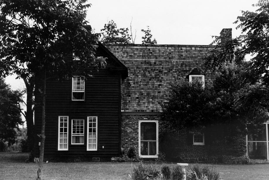 Salisbury Plantation has two principal sections: a 19th century, two-story plus attic clapboard section whose roof ridge runs east to west, and a first quarter 18th century 1 1/2 story brick section with its ridge running north to south. Facing north the clapboard section is three bays wide by one bay deep. The entrance, in the east bay, is framed by fluted pilasters beneath an architrave with triglyphs. The center and west bays have a single window. There is a window in each bay in the second story. All the windows on this facade have 9/6 lights. The house rests on a brick foundation and has a dentil molding under the eaves. The west end, with all new clapboards, has three tiers of windows. The one in the gable has 2/2 lights while the other two have 9/6 lights. The east end is identical except that most of the clapboards are old. On the second story west bay on the south side is a small 6/6 sash window, which overlooks the roof of the brick wing. On the south side is the older brick wing, two bays wide by two deep. On the west side is a barge batten door in the north bay and a 9/6 light window in the south bay. These bays apparently were built at different times. Both bays are laid in Flemish bond but the courses do not align. There are also obvious areas of repair work in the brick. The areas of old brickwork have grapevine mortar. The west side also has a batten door in the north bay and a 9/6 light window in the south. However, the bonds are different, with English bond in the north and Flemish in the south. Above the south bay there is a 9/6 light gable-roofed dormer window on both the east and west sides of the steep gable roof. The roof has an obvious buckle between the two bays. The rafters are also butted differently. The five rafters in the north bay have pegged, overlapping joints while the seven rafters in the south bay have pegged, mortise-and-tenon joints. The south end has random glazing in the Flemish bond. A 20th century screened porch extends across the two-bay width. There is a batten door near the west edge and 9/6 light window in the east bay. Small, single-light windows flank the flush chimney near the peak of the roof on the south gable end.