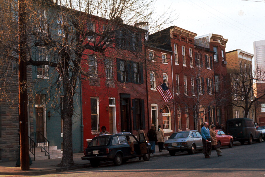 Affording a sweeping panorama of Baltimore and its harbor, Federal Hill has long been the center of the city’s commercial activity. Named for the new national government, Federal Hill was the scene in 1788 of a celebration in honor of Maryland’s ratification of the Constitution. An observatory built in 1795 was used to signal local merchants of arriving ships. Brickmaking and pottery were important industries of the area, and both red clay and white sand were mined here. Near the northern boundary of the district is Federal Hill Park, measuring four and one quarter acres.