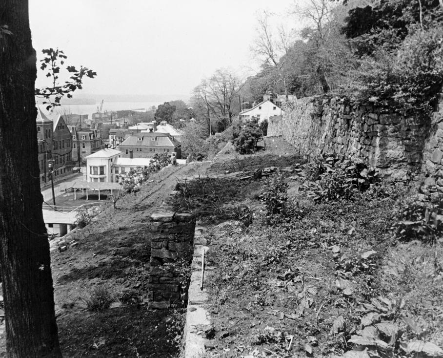 Port Deposit, Maryland, located on the eastern bank of the Susquehanna River, is a small town of about 900 people. Early in the 18th century this area became a river-crossing point and a large mill was established. By 1729, Thomas Cresap operated Smith's Ferry just north of Port Deposit, probably then known as Rock Run. Adjacent to Port Deposit, Anchor and Hope farm was acquired by the Creswell family before 1700 and was probably the area's first inn. When the family acquired the ferry operation, the village became known as Creswell's Ferry. Much of the land in the area was owned by Philip Thomas. When Mr. Thomas died in 1811, his son purchased the various parcels from the heirs and had surveyor Hugh Beard draw a plat (dated October 21, 1812) for the southern part of Creswell's Ferry. It showed a 33' wide street with only a few lots on the river side. On December 5, 1812, Governor Winder signed a bill changing the name to Port Deposit. The town's first charter was signed by Governor Samuel Stevens on January 17, 1825. Much of the town's great prosperity during the 19th century resulted from its role as a port of deposit for raw materials such as flour, potatoes, whiskey, lumber, grain, and coal brought down the Susquehanna on rafts. North of Port Deposit the river was not navigable by ship, so the town served as an exchange point where the goods could be unloaded and reloaded on ships for Baltimore and other ports. Completion of the Maryland Canal in 1812 contributed much toward the town's growth. The town also established itself as an important processing and distribution center, having lumber mills, gin mills, foundries, and other industries. The first bridge across the Susquehanna was built at Port Deposit.