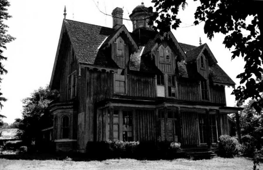 Ravenhurst was a 2 1/2-story Carpenter Gothic-style board-and batten house built about 1854-1857. It was a complex composition of gables with simple but heavy vergeboards, finials, pendants, an octagonal tower with a domed roof, and tall chimneys. The exterior of the house was painted yellow. Extending across the entire three-bay facade was a 52-foot one-story porch. The entrance had a transom over three-paneled double doors flanked by sidelights. The second story windows broke through projecting eaves and board and batten siding continued upward over them to form gabled dormers with pointed windows. The central bay and dormer were larger and had double windows. On the northeast gable end was a bay window on the first floor. Throughout, windows were finished with a hood molding. Ravenhurst's T-shaped plan provided a central hall flanked by four rooms on each floor. The principal rooms to the front of the first floor had floor-to-ceiling windows opening onto the porch. In the rear extension were smaller rooms on each side of the stair. The dog-leg stair was not continuous, and ended at a landing on the second floor and then began another run to the third. On each floor was a central hall with a large circular opening in its ceiling so that the interior of the dome could be seen from all levels. A circular stairway led from the third floor to the level of the cupola's windows. Adjoining the northeast corner and fitting into the intersection of the T was an older, two-story tone house of five bays facing in the opposite direction. It was thought to have been built about 1800 and was extensively remodeled on the inside. Part of the exterior was covered with board and batten, but some whitewashed stone remained under the two-story front porch. There was also a third addition connected the stone house to the main block. This two-story board and batten wing extended northeast from the stair at the rear of the main hall in Ravenhurst. It was partially complete as shown in an 1889 lithograph plat of the estate and later extended. There was a triangular first floor bay window added to the northwest by the last owner. There were numerous outbuildings on the grounds. Northeast of the house were an ice house, smokehouse, barn, and corncrib/wagon house. Of importance, only a small wash house, complementing the design of the main house, remained when the property was listed on the National Register of Historic Places. Ravenhurst burned on October 31, 1985.