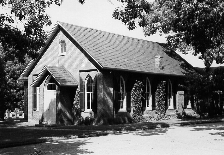 The original section of St. Thomas' Episcopal Church was constructed in 1743. This rectangular building, constructed of salmon red brick, measured 56' long and 36' wide. Eight round-arched windows light the building, four along the north wall and four along the south. The top section of each window is of diamond-patterned, leaded, clear, hand-blown glass. The bottom section has a rectangular glass pattern with wooden mullions. The windows retain much of their original 1743 glass. The original door of the church stood on the south wall, but was blocked off in the late 19th century and replaced with a door on the west wall. Originally, there were four small windows and a door on the west wall, but owing to the addition of the narthex in 1970, these windows are no longer to be seen. The original church has a very wide brick paved aisle, flanked by numbered box pews. In 1890, a chancel and transepts were added to the east gable end, rendering the church cruciform in shape, and showing Gothic revival influence. While the original portion was Georgian, the addition was an attempt to conform with the Gothic style then in vogue. The brick aisle was continued into the new addition. The small, barrel-shaped chancel has three large windows in the end. In 1893, the John LaFarge studios of New York installed stained glass windows depicting the Ascension. The windows are in the opaque Victorian style. In both transepts is a rose window in brown and clear panes of stained glass. In 1970, a major restoration of the church was undertaken, including the additions of a basement, and a gallery and narthex added to the west wall of the church. The narthex provides an entrance to the church and entrance to the basement. Not far from the church stands the parish hall, constructed in 1877, which was added to in the 1920s and 1950s to provide offices and Sunday school rooms.