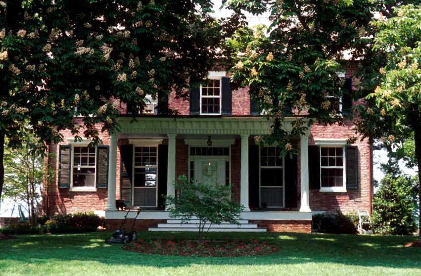 Saleuado is an L-shaped, two-story house of brick laid in common bond on a fieldstone basement. Facing east, the principal facade is five bays wide. The main entrance, a four-panel door with recessed paneling, sidelights, and a seven-light transom, is located in the center bay. On either side of it is a 6/6 sash, double-hung window with paneling below and long louvered shutters. These three bays are sheltered by a one-story porch built on a brick foundation with four wood columns supporting a roof with ornate bracketing all along the frieze. The other openings on this facade also contain 6/6 sash and have louvered shutters. On either side of the porch is a grilled window at the basement level. All window and door openings in the house have wood lintels, either flat with a molding across the top or a pattern made up of blocks and two bands of reeding. To the rear of the main block is a two-story brick wing with a two-story open frame porch which faces south. A four-panel door with three-light transom enters onto the porch from the first and second levels. This wing is contemporary with the main block. The gable roof is covered with slate; a stepped brick cornice runs under the eaves. Four interior brick chimneys extend from the house in the north and south gables and from the center and west gable of the rear addition.