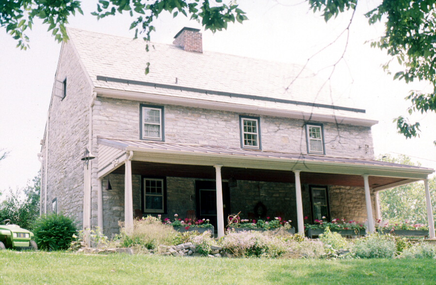 The front section of the Old Forge house is particularly important as one of the oldest dated dwellings standing in Washington County. Built in 1762, before the close of the French and Indian War, the house was certainly one of the most substantial dwellings in the area of that date. The structure, with its steeply pitched roof, small, irregularly spaced windows, and its central flue, reflects its 18th century building date. The ell to the rear or east of the main section was probably added before 1800. The house and farm received the name of Old Forge from the nail forge the Hughes family ran nearby. Nothing remains from the Antietam Forge site, but it was one of a number of forges located in Washington and Frederick Counties and nearby Pennsylvania in the 18th and 19th centuries. Although the forge itself does not survive, its existence is marked in its connection with the house in which the ironmaster lived.