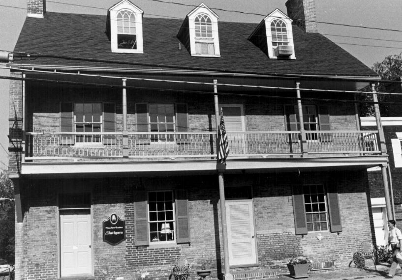 The Old Inn is located on the southeast corner of South Talbot Street and Mulberry Street in St. Michaels. It is a large brick structure, four bays wide and 2 1/2 stories high, with flush brick chimneys centered at each end of a pitched gable roof. Three 12/6, round-arched gable-roofed dormer windows are symmetrically arranged across the roof, which extends down to cover a two-story porch, which stretches across the entire front, or west, facade. The first floor of the west facade contains transom-topped doors in the north and the second bay from the south end. The two windows are 9/6 sash. On the second floor, 6/6 sash windows are in all bays but the second from the south, which holds a door opening onto the second floor of the porch. All windows have louvered shutters. Numerous additions have been made to the original building. Most significant of these is a small brick wing on the south gable. It is two bays wide and a full two stories high on the front facade, but has a pitched shed roof that slopes back to the rear, so the second floor is actually a small loft with limited head room. The main building dates to the early 19th century, and the brick wing appears to have been added in the second quarter of the 19th century. It has been suggested that the brick wing may pre-date the main building, but architectural evidence clearly demonstrates that this is not the case, and although the wing could have been built at the same time as the larger structure, the brick walls of the two sections are not bonded together, indicating the wing was added later. Much of the rear facade of both sections is now covered by a series of frame additions. These include a two-story rear ell that projects from the north portion of the main building, a one-story addition adjoining the south wall of the ell, and a two-part, one-story addition that projects from the rear wall of the brick wing. The rear ell probably dates to the latter half of the 19th century, while the remaining additions are all more recent and of no architectural significance.