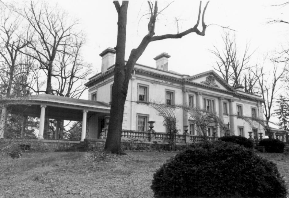 The Liriodendron estate is comprised of a circa 1898 Georgian Revival mansion, Liriodendron; a circa 1835 classically influenced house, the Graybeal-Kelly House; a circa 1835 bank barn; a circa 1898 carriage house; a circa 1850 board-and-batten cottage; and five other outbuildings including a corn crib, a smokehouse, two ice houses, and a shed. The mansion, located at 502 West Gordon Street in Bel Air, is reminiscent of Newport, Rhode Island houses in its dramatic grandeur and setting, and was designed by the Baltimore architectural firm of Wyatt and Nolting in the Georgian Revival style. Set on a raised stone foundation and constructed of stuccoed brick with a low-pitched hipped roof, the T-shaped house is 2 1/2 stories. The seven-bay by two-bay main block faces basically west. Spanned by a veranda along the west façade, it has a three-bay-wide central pedimented gable and is flanked by semi-elliptical pavilions. In this section are two interior end chimneys and two chimneys on either side of the central gable. The five-bay by three-bay service wing has two interior chimneys in both the north and south ends and three-bay jerkinhead dormers in each side. The main section, typically, is more highly ornamented than the service wing, with corner quoins, chimneys with string courses and dentiled caps, and crossette window trim. The tripartite modillioned cornice encircles the whole house and the drainpipes have egg-and-dart trim. The ornament of the cornice is ceramic. Except for the casement windows in the basement, all windows have six lights over three vertical lights; those in the service wing have louvered shutters. The c. 1835 Graybeal-Kelly House, at 501 West Gordon Street, was the manor house for the farm until the Liriodendron mansion was constructed. This Georgian style house is 2 1/2 stories, laid up in five-stretcher bond. Five bays wide and two rooms deep, with symmetrically arranged façades, this gable-roofed house with two interior end double chimneys has a new one-room addition on the west end. Three dormers stand on the south side of the roof and two on the north.