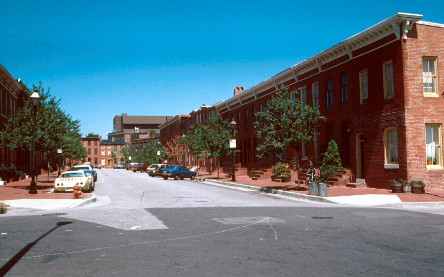 The Barre Circle Historic District is significant for its architecture and for its association with the industrial development of Baltimore City. Its cohesive streetscapes of modest, unadorned brick rowhouses reflect the architectural response to Baltimore’s rapid industrial expansion in the mid 19th century, and typify urban worker’s housing of the period. In the context of Baltimore’s mid-19th century neighborhoods, Barre Circle is unusual in the consistently unpretentious character of its architecture, which reflects the historic social homogeneity of the area; whereas other rowhouse neighborhoods housed a mixture of white-and blue-collar workers, the managerial class---and their more elaborate dwellings---were, and are, conspicuously absent from Barre Circle.