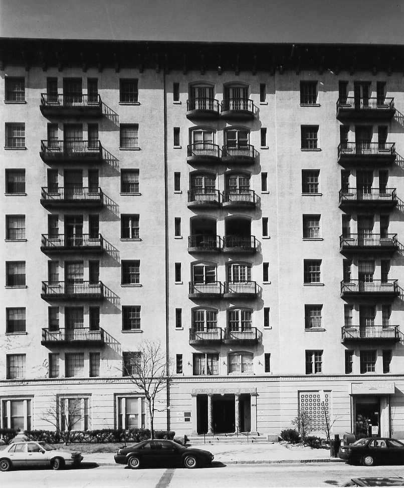 The Eutaw-Madison Apartment House Historic District draws significance from two sources. First, the buildings are architecturally significant as examples of the type of residence which was preferred by well-to-do urbanites during the first quarter of the 20th century. During the period when these buildings were erected, high-rise apartments were coming into fashion as an attractive alternative to single-family houses. Apartments such as those in the Eutaw-Madison buildings often exceeded comparable townhouses in cost as well as in floor area. The elaborate Renaissance-eclectic detailing of the Eutaw-Madison Apartment Houses, both on their exteriors and in their opulent interior spaces, makes an unmistakable statement about the achievements and aspirations of the residents. The large scale of these buildings sets them apart from the two- and three-story, late 19th century rowhouses which characterize the majority of the Eutaw-Madison neighborhood. Their siting reflects the practice, seen elsewhere in Baltimore in the early 20th century, of locating the new high-rise apartment buildings overlooking large, open landscaped spaces; they command a highly desirable location atop a hill overlooking a picturesquely landscaped park and lake to the north, with a splendid view of the city to the south. The district derives additional significance from its association with the development of Baltimore’s Jewish community, and with prominent figures in the 20th century commercial history of the city. The Eutaw-Madison neighborhood became a center of the Jewish community of Baltimore, beginning in the mid 19th century. By the first quarter of the 20th century, the neighborhood was fully established as an enclave of middle- and upper-class Jewish merchants and professionals. Many of these individuals took apartments in the buildings which comprise the district; the list of residents includes names which continue to be prominent in the mercantile affairs of Baltimore, such as Hochschild, Hamburger, Hutzler, Hecht, Katz, and Hess, all of whose enterprises flourished during the period of their founders’ residence at Eutaw-Madison.