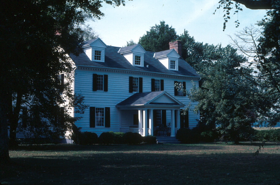 White Hall is a 2 1/2 story, ell shaped frame house constructed c. 1785-1798. The building rests on a partially excavated brick basement. The north or water facade, facing Wicomico Creek, is divided into four unevenly spaced bays with the entrance occupying the second bay from the left. Early 12/12 window sash survive on the first floor and 9/6 sash on the second; however, the exterior surrounds have been stripped of any molding. Each window has a pair of paneled shutters. A modillioned cornice with dentiled bed molding stretches across the base of the roof. A gable roofed front stoop was also added around the turn of the 20th century. The gabled roof is clad in asphalt, and has three c. 1900 dormers on each slope. The west gable end is brick, laid in Flemish bond. The rest of the house is uniformly sheathed with beaded weatherboards. A two-story enclosed porch spans the rear elevation. The interior is organized in a three-room plan, relatively uncommon on the Eastern Shore of Maryland, with a central stair hall opening onto a parlor on the right and a study and a dining room on the left. The overwhelming majority of original interior trim remains intact, including stair detail, paneled doors and wainscoting, mantels, and architraves. In addition, a rare mid-19th century mural painting depicting landscapes and period costumes survives in a second-floor room.