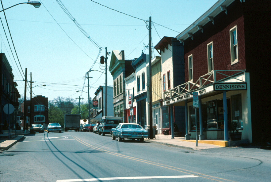 The Mount Airy Historic District is significant for its architecture, and for its association with the development of transportation in west-central Maryland. Architecturally, the district comprises a cohesive collection of commercial, residential, and ecclesiastical buildings dating from 1846 through the early 1930s; these buildings and their setting retain a high level of integrity, and the district clearly conveys the character and feeling of a rural Maryland town in the early 20th century. The houses within the district reflect a variety of stylistic influences: they consist primarily of frame "I-houses" reflecting a vernacular form widely used in rural Maryland from the mid 19th century through at least the first three decades of the 20th. In addition, several examples represent the popular Foursquare and Bungalow trends of the early 20th century, and a number of larger houses, chiefly along Main Street, reflect the Second Empire, Queen Anne, and Colonial Revival designs apparently derived from pattern books. The residential areas within the district are characterized by neatly tended, tree-shaded lawns; notably few intrusions or insensitive alterations break the continuous streetscapes. Many of the houses within the district feature a corner turret, in addition to the visual interest of the streetscapes and the unique character of the district. Modern alterations, where they occur, are generally reversible and by no means so extensive as to detract from the district's capacity to convey a sense of time and place. A small commercial area, characterized by two-story, shed roofed, chiefly early-20th century storefronts, provides an anchor for the residential areas lying to its north and south, and represents both a past and present focus for the district. The district derives additional significance from its association with the development of transportation in the region; an early and important center of both rail and highway transportation, the district owes much of its current appearance to improvements in these modes of transit which occurred around the turn of the 20th century.