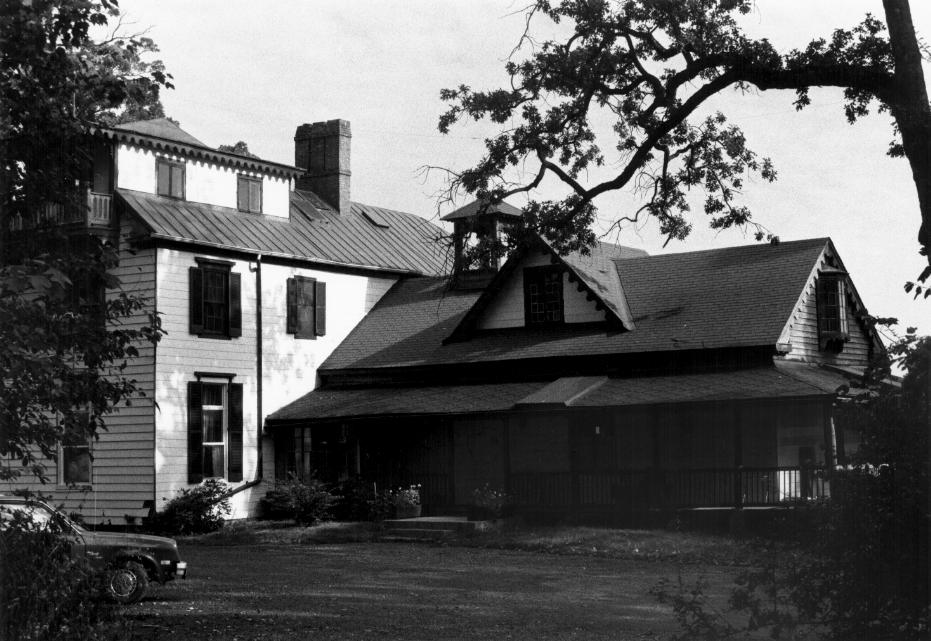 The Lawn is a 19th century frame house with five outbuildings, three of which date from the 19th century (two cottages and a barn) and contribute to the significance, and two of which do not (20th century garage and greenhouse). The Lawn was constructed in three phases (c. 1842, c. 1845, c. 1860). This complicated building embodies both the eclecticism of the 19th century and the changing and varied interests of the owner/builder, George Washington Dobbin. The Phase I house was a simple rectangular building built as a summer retreat. In the mid 1840s when Dobbin retired for health reasons, he doubled the size of the building. He converted the original house to a library and stair hall and constructed a two story addition to the west containing a double parlor, dining room, back hall, and porch on the first floor and bedrooms above. A one-story porch surrounded the Phase I building on the north, east and south. Fifteen years later, Dobbin made the final additions: (1) extending the southern double parlor to the south which became the base of the three-story observatory tower, (2) added a two-story kitchen wing to the west, and (3) enclosed part of the Phase II western porch. The asbestos siding was added in the 1970s. The outbuildings are located to the west and south. The 19th century barn is located south and west of the house. The two 19th century cottages were moved to avoid demolition by the Harbor Tunnel Thruway to the south side of The Lawn just east of the house.