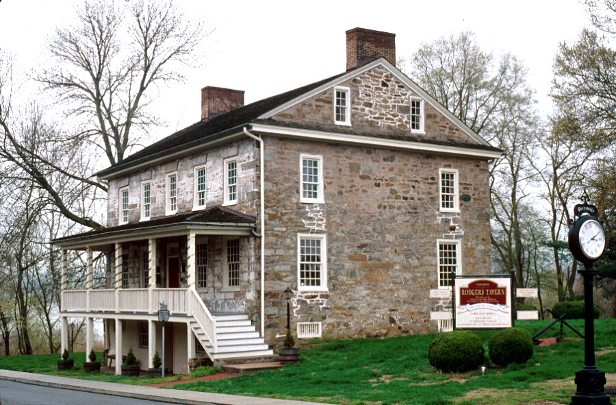 Rodgers Tavern is of national importance due to the frequent visits of George Washington between the years 1755 and 1798. Colonel John Rodgers (1728-1791), the owner during most of Washington's visits, was the progenitor of the Rodgers family which distinguished itself in the formation and growth of the United States Navy. Also, the visits of other distinguished persons, namely Martha Washington, Lafayette, Rochambeau, and others, make the hostelry of prime importance, and one of the remaining hostelries used by 18th and 19th century travelers.