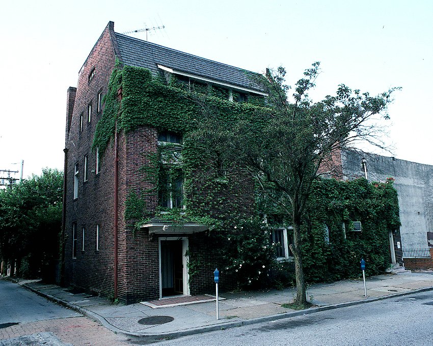 The Hans Schuler Studio and Residence, located at 5-7 East Lafayette Avenue in downtown Baltimore, is an eclectic brick building constructed in two stages. The studio was designed by Baltimore architect Howard Sill and constructed in 1906; the residence, designed by Sill’s former apprentice Gordon Beecher, was added in 1912. The resulting composition presents an example of early 20th century eclectic architecture outstanding in Baltimore City, combining elements from various fashionable styles and incorporating as ornament the work of sculptor Hans Schuler, for whom the building was constructed. The building faces north; the studio, which occupies the western half of the lot, is one story high with a recessed skylight rising another low story; the attached house stands two stories tall plus a high, steep mansard story. The building is constructed of dark red brick, with limestone accents in the window sills and cornice on the north façade. The studio is two bays wide, with an entrance in the west bay and a three-part casement window in the east; the window is flanked by Classical draped female figures representing muses, set into recessed panels. The house is also two bays wide; the bays are defined by vertical groups of casement windows. Sculpture panels are incorporated into the window area between stories, and whimsical figures support the hood which shelters the entrance, located in the eastern bay of the façade. The north slope of the mansard is clad in slate and lighted by a broad shed dormer. On the interior, the studio is divided into two large workrooms; the house comprises an entry/stair hall, living hall, dining room, and kitchen on the first floor, with three bedrooms, a small sewing room, and bath above, and another bedroom and studio space in the attic. Interior decorative detailing is quite plain, with oak-finished five-panel doors framed by simple wide board surrounds; window trim and baseboards are similar. The building retains a high degree of integrity, having remained essentially unaltered since its construction; it has been continuously occupied by the Schuler family, and retains its original use as residence and art studio.
