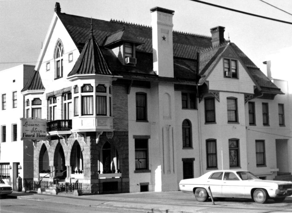 The George Truog House is a c. 1903 2 1/2-story brick structure. A recessed porch spans the full three bays of the south facade, behind an arcade of three Gothic arches constructed of rusticated stone with sculptural keystones. The central arch rests on paired columns, and a flight of stone steps rises through the arch. Within the porch, the entrance is offset to the east, and consists of a wide door with a large oval plate-glass panel surmounted by a pointed-arch transom of beveled and engraved glass. A tripartite 1/1 sash window flanks the entrance on the west, and a single 1/1 window lies to the north. Lintels and sills are of stone. The recessed wall, like the rest of the south facade above the arcade, is constructed of yellow brick laid in common bond with fine joints of dark-colored mortar. The second story features octagonal oriel windows projecting from each corner. These oriels have steeply pitched octagonal roofs, clad in tile, with finials and flaring eaves. Each facet holds a large plate-glass casement window surmounted by an elaborate transom of stained and beveled leaded glass. The area below each window is filled with a panel enriched with swags and festoons. The oriels are supported by curved brackets. Between the oriels, a pair of plate-glass doors open onto a balcony. Each of these has a five-part enframement of colored, leaded glass. The balcony rests on curved brackets and has a balustrade. A two-part lancet-arched window with Gothic tracery is centered in the gable peak, within a stone-arched opening. The gable peak is topped by a finial. The east elevation is six irregular bays wide, with various windows of colored and etched glass or plain 1/1 sash. The second bay from the south contains an exterior paneled chimney with a tall corbeled stack. A projecting 2-story polygonal bay window occupies the third bay from the south. This polygonal bay window is topped by a cross gable, with brackets in the cutaway corners, a pair of 1/1 sash windows in the gable, and is topped with iron cresting and a finial. Similar iron cresting trims the main north/south roofline. A hip-roofed dormer with iron cresting and a 1/1 sash window pierces the east slope of the roof between the southeast oriel and the chimney. Another chimney rises from the interior, just north of the gable which caps the projecting bay. The roof is clad in patterned slate. Scroll-sawn brackets support the deep overhanging eaves. The interior plan is irregular. Despite minor alterations made when the building was converted to a funeral parlor, the majority of the original decorative detailing remains intact. The highly ornate interior details include mosaic and Delft tile fireplace surrounds, paneled wainscoting, molded ceiling ornament, and mural paintings.