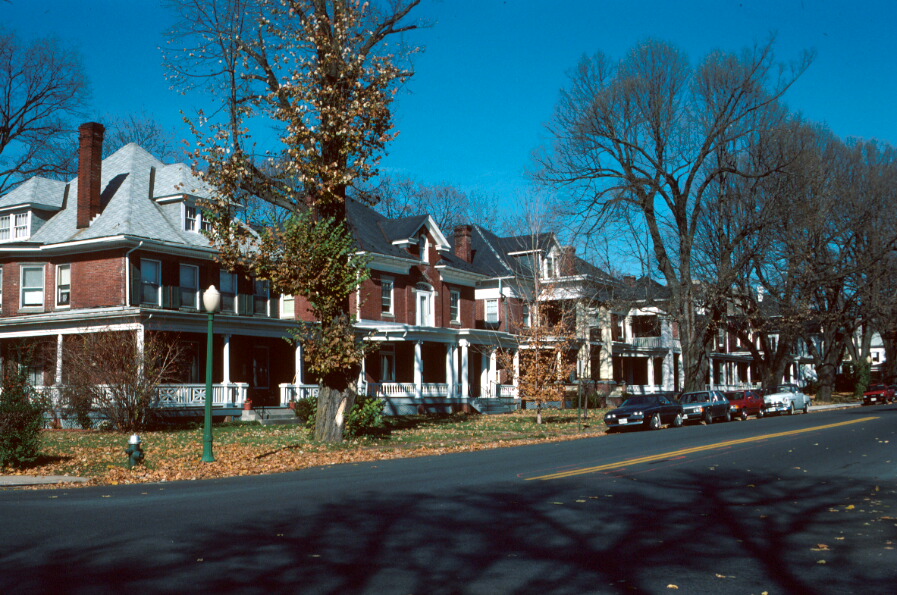 The Oak Hill Historic District is an approximately 76 acre residential neighborhood in northern Hagerstown. It is characterized generally by large scale (some more so than others) houses built in the first third of the 20th century and standing in a garden city type setting featuring curved streets, wide tree-lined boulevards with deep set-backs, and small parks. The houses are generally Colonial or Georgian revival in stylistic influences though excellent examples of Spanish and Tudor Revival, Foursquare, and Bungalow are present. The properties are generally heavily landscaped. The terrain is generally flat although the blocks between The Terrace and Forest Drive are characterized by a high hill with the houses standing on the ridge. Most houses have attached or free-standing garages of the period.